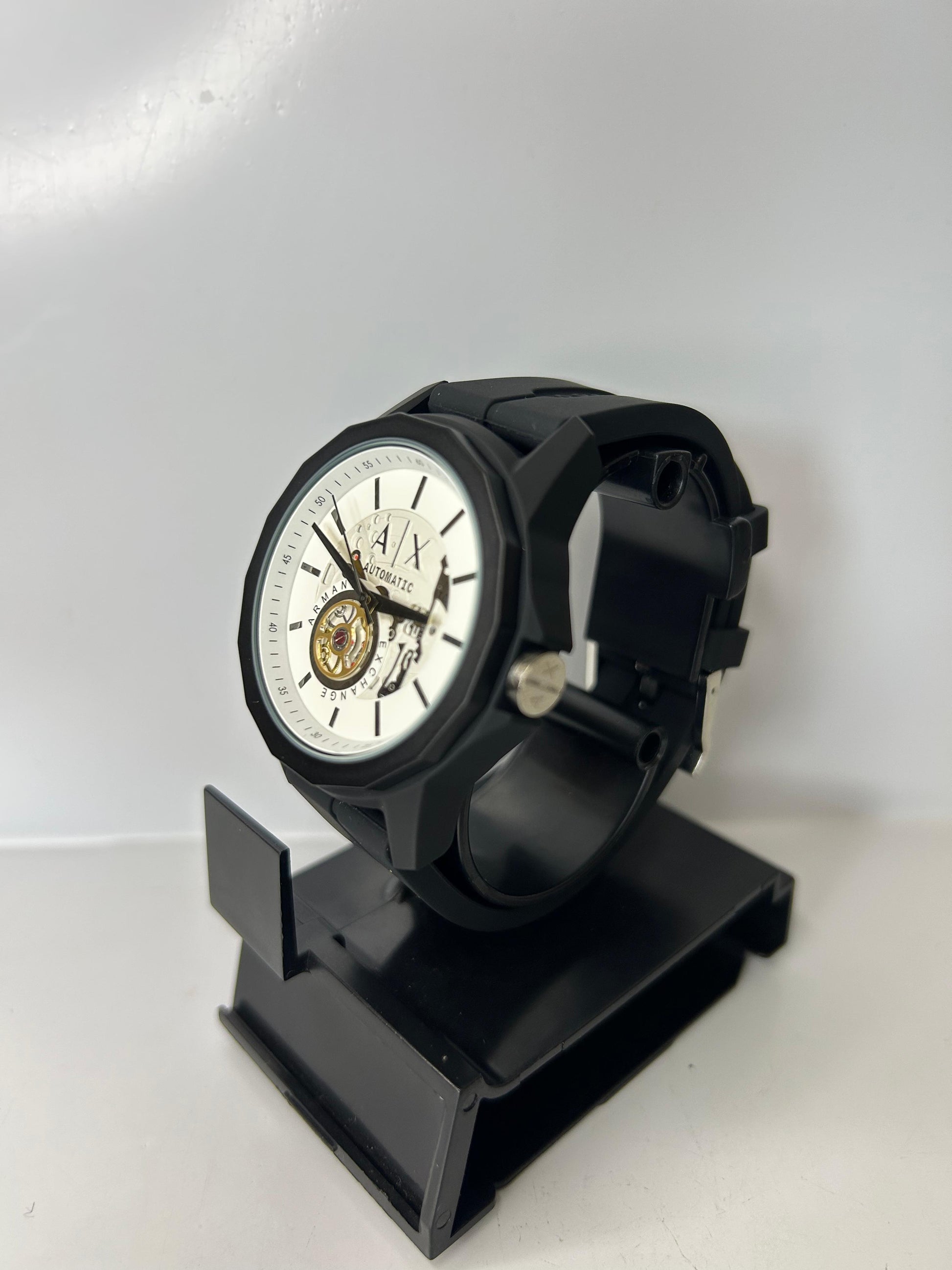 Este reloj Armani Exchange combina un estilo audaz con un diseño contemporáneo, perfecto para quienes buscan un accesorio llamativo y funcional. Presenta una correa de silicona en negro que le otorga un aire juvenil y dinámico, ideal para el uso diario o para destacar en cualquier ocasión casual.