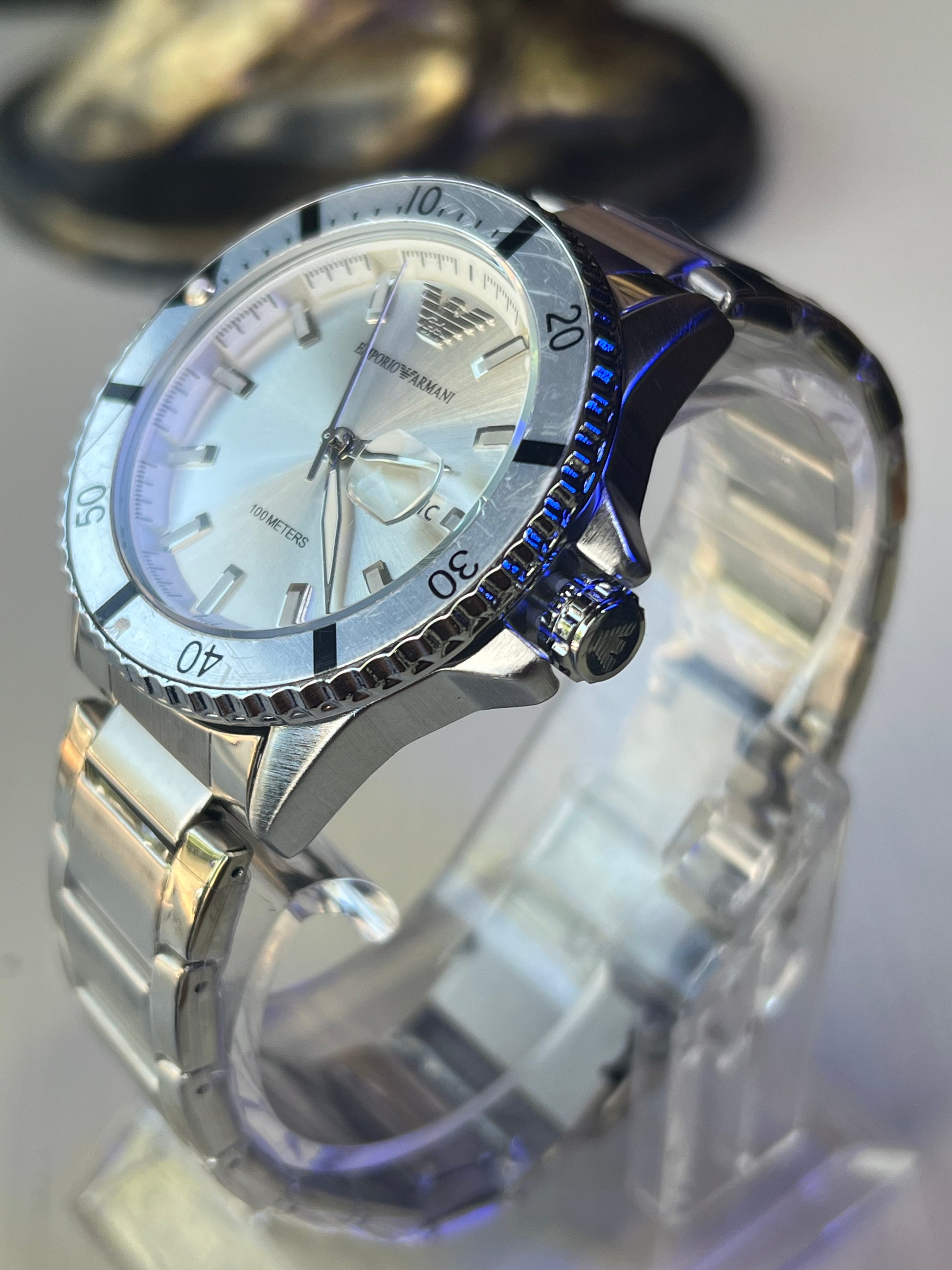 Aunque Giorgio Armani lanzó su empresa en los años 70 no fue hasta 1997 que vió la luz su primera colección de relojes Emporio Armani. «Siempre he creído en una mezcla de innovación y tradición, y todo mi camino estilístico se basa en este concepto», dijo Giorgio Armani en la presentación.