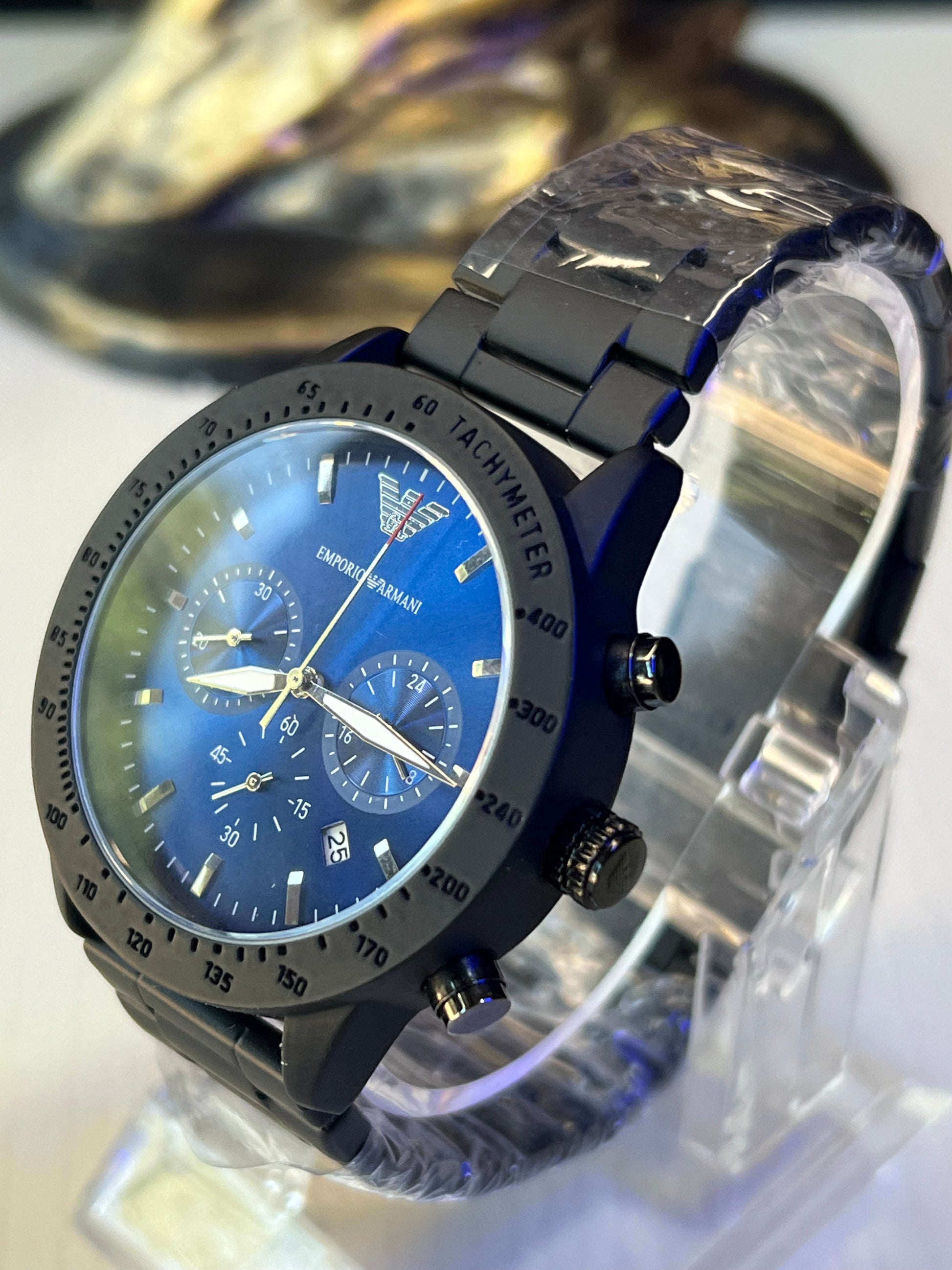 Aunque Giorgio Armani lanzó su empresa en los años 70 no fue hasta 1997 que vió la luz su primera colección de relojes Emporio Armani. «Siempre he creído en una mezcla de innovación y tradición, y todo mi camino estilístico se basa en este concepto», dijo Giorgio Armani en la presentación.