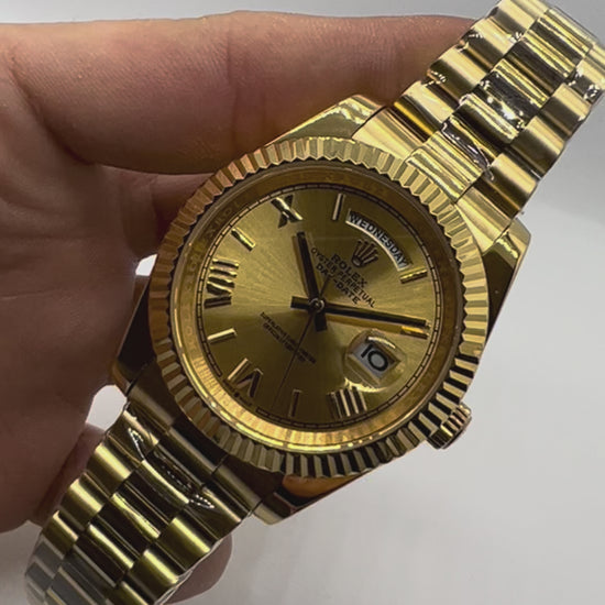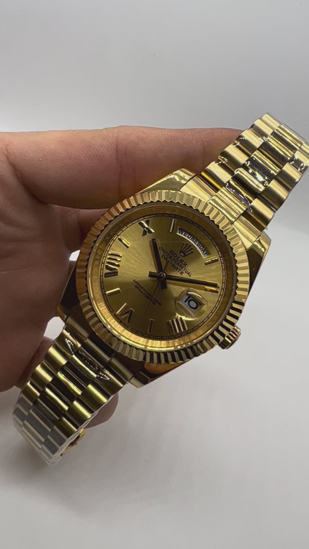 El Day-Date en oro amarillo es quizás la versión más icónica y clásica de este modelo. Fue justamente este estilo el que cimentó la reputación del Day-Date como “el reloj de los presidentes”.